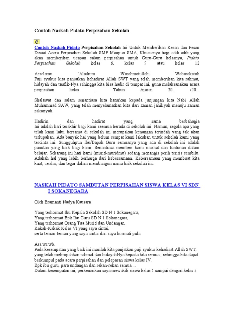 Pidato adalah bentuk kegiatan menyampaikan aspirasi dihadapan orang lain. Selamat pagi dan salam damai untuk kita semua. Contoh pidato tentang perpisahan sma kelas xii dalam bahasa inggris beserta artinya ditulis admin sabtu, 10 oktober 2020 tulis komentar edit. Sungguh indah kebersamaan kita, pastinya tidak akan bisa dilupaka. Contoh pidato perpisahan sekolah kelas 12. Kami juga mengucapkan terima kasih. Contoh pidato perpisahan kelas 12 sma. Kiat sukses dalam pidato sambutan perpisahan kelas 6 wali murid jika anda sudah biasa menyambut dalam acara tentu anda sudah tidak perlu lagi banyak mikir, mendadakpun anda juga siap. Contoh teks pidato perpisahan kelas 12 sma terbaik. Untuk itu, contoh pidato bahasa inggris perpisahan kelas 6, 9 dan 12 beserta artinya ini, semoga saja menjadi penghibur di saat yang tepat. Contoh pidato bahasa jawa perpisahan kelas 12 ditulis admin senin, 16 desember 2019 tulis komentar edit. Pidato perpisahan oleh wakil siswa kelas 3 sma. Pidato perpisahan siswa kelas 12 sma.